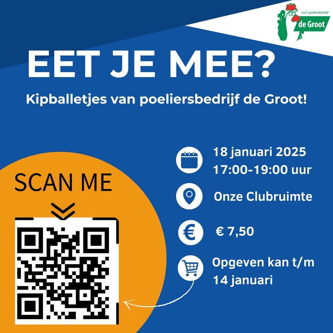 Op zaterdag 18 januari wordt er van 17:00 uur tot en met 19:00 uur weer een lekker menu geserveerd in de kantine. Tussen 18:00 uur en 19:00 uur is er geen wedstrijd, een mooi moment om dan samen van een lekkere maaltijd te genieten!